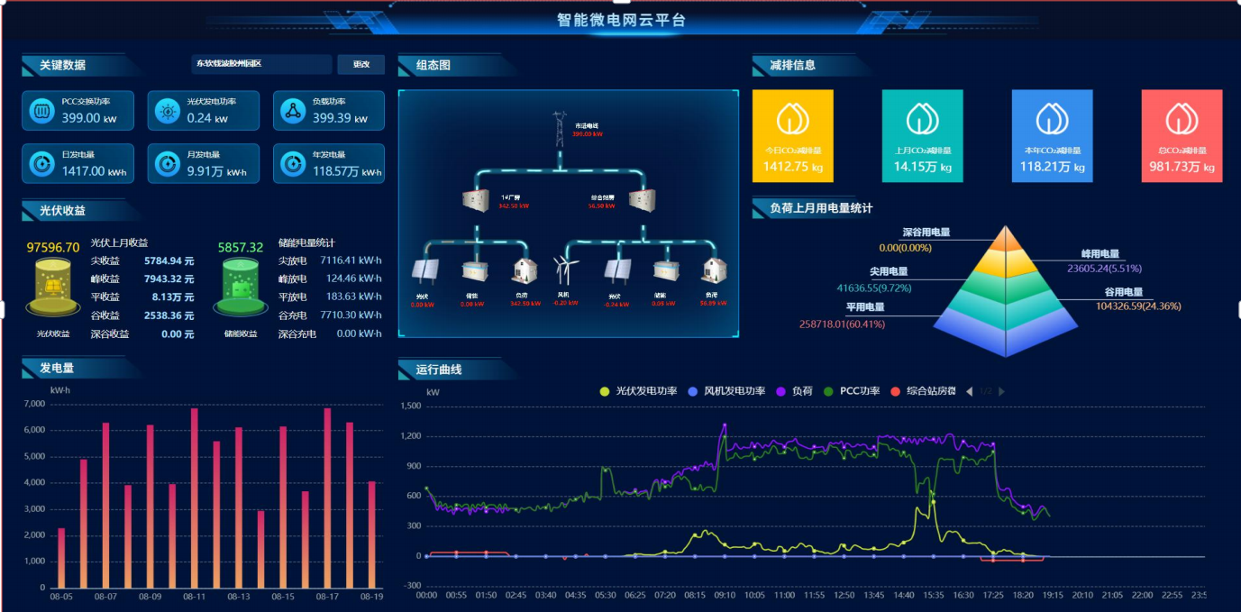 錦泰恒智能微電網云平臺對太陽能光伏發電和風力發電、儲能的實時運行信息、報警信息進行全面的監視,并對分布式能源進行多方面的統計和分析,實現微網優化調度、經濟運行。